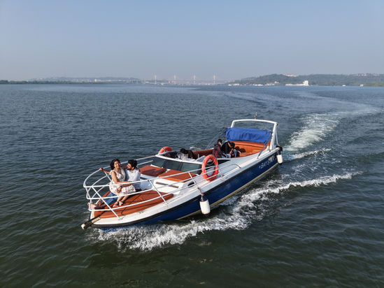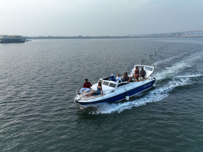 BayStar is a stylishly designed 27-foot cabin cruiser that comfortably accommodates up to 12 guests, making it perfect for intimate events and personalized experiences. Its two-level layout and generous seating provide sweeping, unobstructed views of the Arabian Sea—ideal for photography, celebrations, or simply unwinding as you cruise through Goa’s scenic waters.